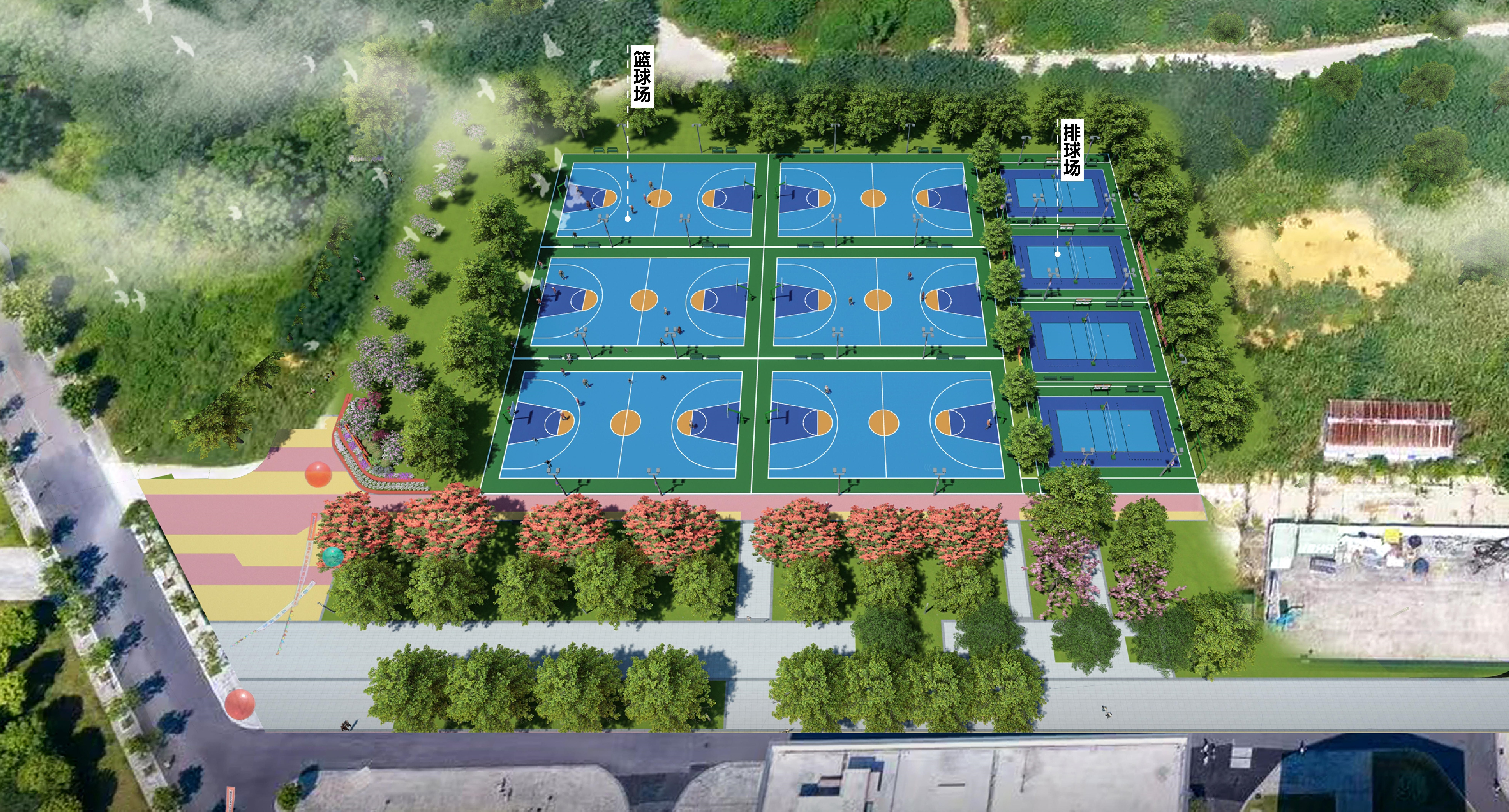 该项目位于1号后勤附属用房西侧,规划建设面积约9500平方米。项目核心内容包括新建6个标准篮球场、4个标准排球场,并同步对球场周边区域进行系统的景观绿化设计与施工,旨在打造一个集专业运动、日常健身与景观休闲于一体的多功能复合空间。